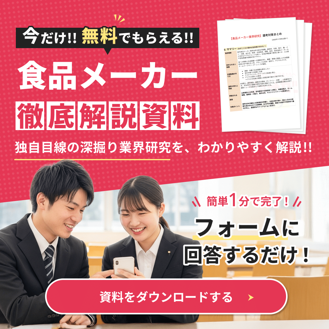 食品業界でのキャリアを真剣に考えている就活生の方は、ぜひ本記事をご活用ください。