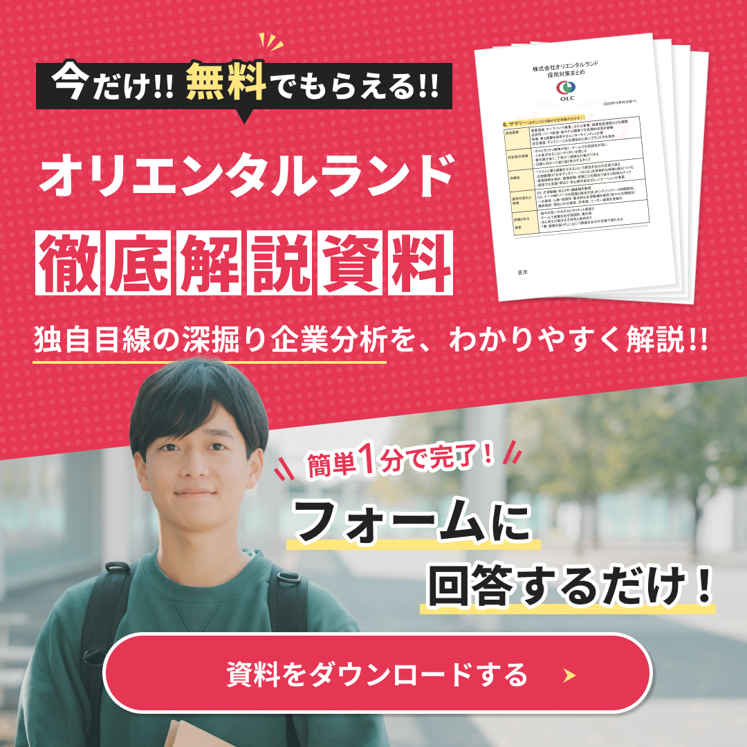 総合職、テーマパークマネジメント職、専門職といった職種があり、それぞれで求められる能力や経験が異なります。次の章から、企業概要や選考の詳細について解説しますので、ぜひ最後まで読み進めてください。