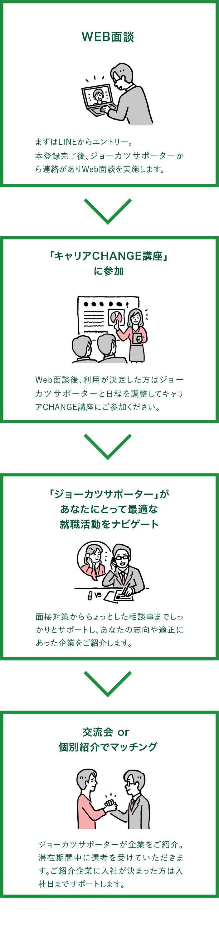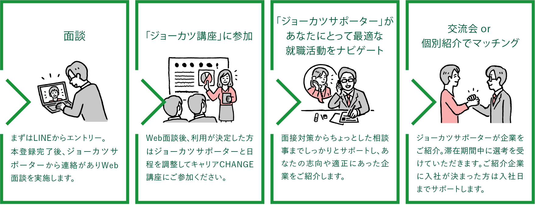 ご利用いただくには登録及びジョーカツサポーターの面談が必須となります。