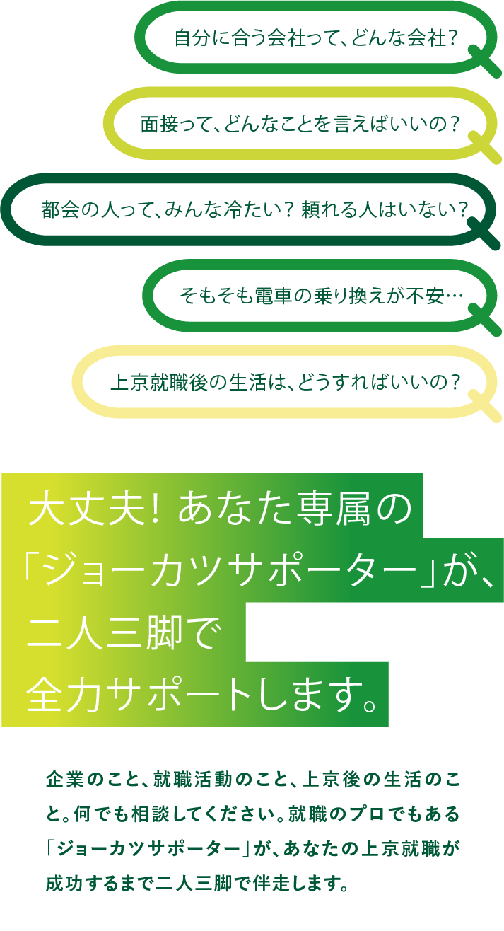 登録が未完了の方、ジョーカツサポーターの面談が未実施の方はご利用いただけません